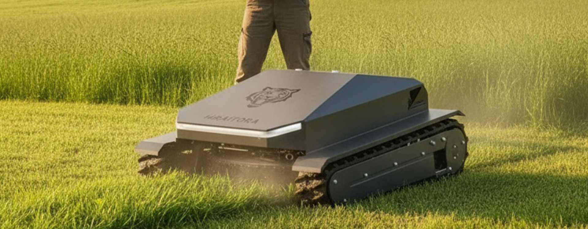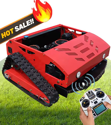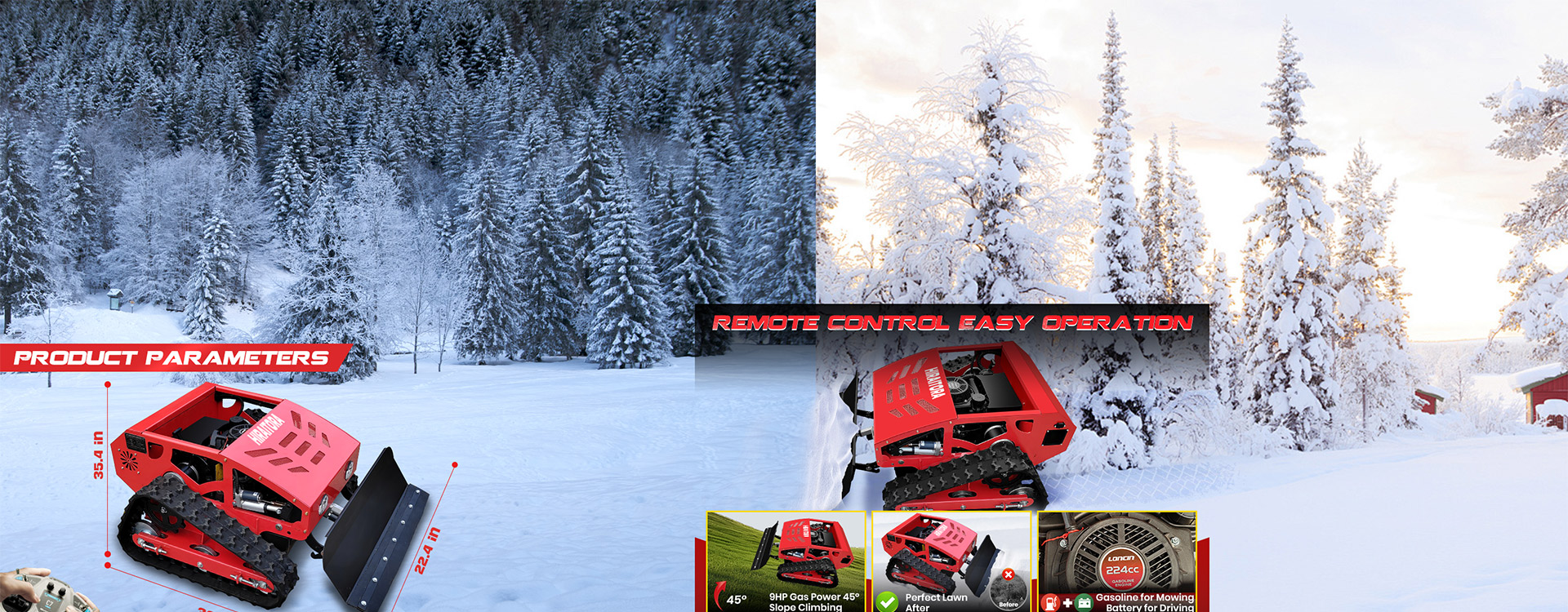 Product Porameters Packaging specifications:1450mm"1380mm"780mm(L"W''H) Operation method:Remote control operation (range of 200 meters) Overall dimenslons:1400mm*1300mm"630mm(L"W"H) Machine weight:305KG (bare machine)/350KG (packaged) iMVowing width:900mm Power:22PS Cutting height:10mm-200mm Walking speed:0.бkm√h Stroke:Four-stroke cycle Walking styie:Electric tracked walking